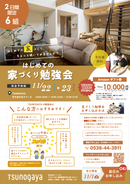【袋井市・磐田市・掛川市限定】初回参加者様限定!Amazonギフト券1万円プレゼント付き家づくり勉強会