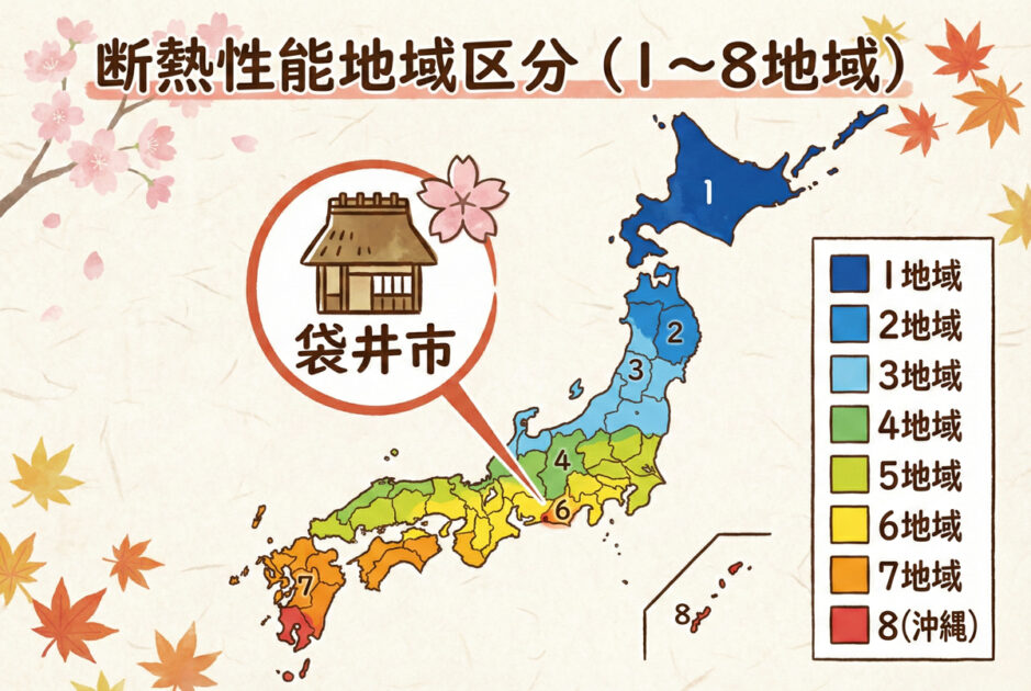 住宅の省エネ性能を評価する際、全国を気候条件によって1〜8の地域区分に分けています。袋井市は「6地域」に分類されており、これは比較的温暖な地域として扱われます。